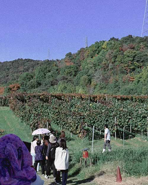 ワインで心が満たされたところで、ワイナリー隣にあるブドウ畑へ。