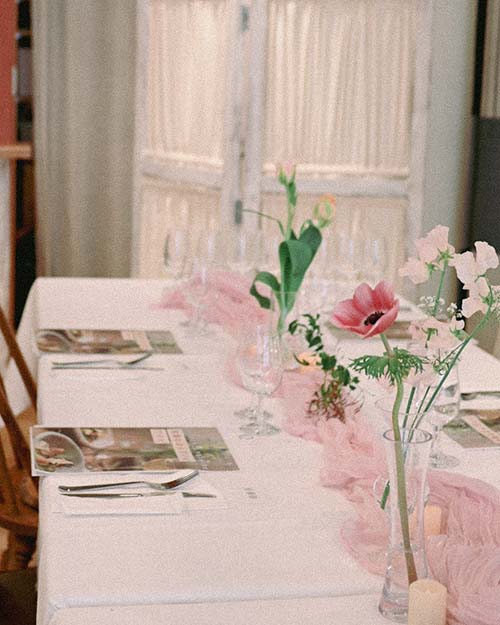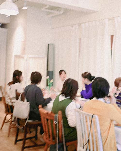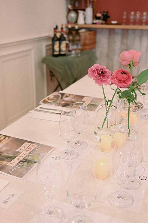 2月の開催で、少し春らしい色合いでテーブルを準備しました。